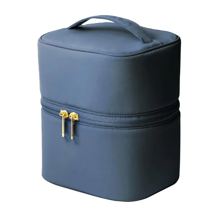 「メイクアイテムを厳選しないと入らない」というお悩みがある方や、スキンケアボトル、コンパクト類まで全てまとめたい方におすすめのバニティポーチです。 手持ちのメイクアイテムやスキンケアアイテム、 縦長サイズのものが多くないですか? メイクブラシ、リップグロス、アイブロウペンシルや、 化粧水、乳液、ボディクリームやヘアオイルなど、 実は縦長サイズのものが多いことに気付きます。 atRiseから新たに生まれた化粧ポーチは、 そんな縦長アイテムも収納しやすいトールデザイン。 細長いアイテムはギャザーポケットを活用して仕分けができ、 中でバラバラになる心配はありません。 高さはあるものの、真ん中のファスナーで開ける仕様なので、 中のアイテムが一目で見て分かるデザイン。 背の低いアイテムや小さなアイテムも取り出しやすくなっています。 スタッフ一番のこだわりポイントは、上蓋の収納ポケット。 デッドスペースの上蓋部分が活躍できるようにデザインしました。 ファスナーポケットには、替えのパフや、 ストックアイテムを入れるのがオススメ。 オープンポケットには、ポケットティッシュやコットンなど、 サッと取り出したいものを入れるのがオススメです。