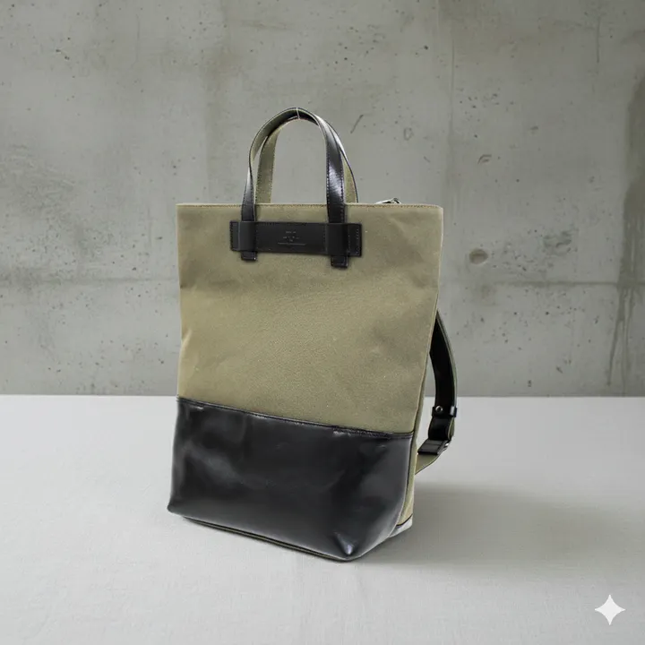日本製 キャンバス 2way バックパック 全5色【日本製】|Lemonton<ルモントン> カーキキャンパス x ブラックレザー