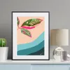 【現代アートポスター】ボタニカル 観葉植物 葉っぱ 雫 海 イラスト A4(S) フレームセット:黒 29.4×38.4cm