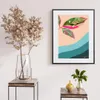 【現代アートポスター】ボタニカル 観葉植物 葉っぱ 雫 海 イラスト A3(M) フレームセット:黒 40.0×51.5cm