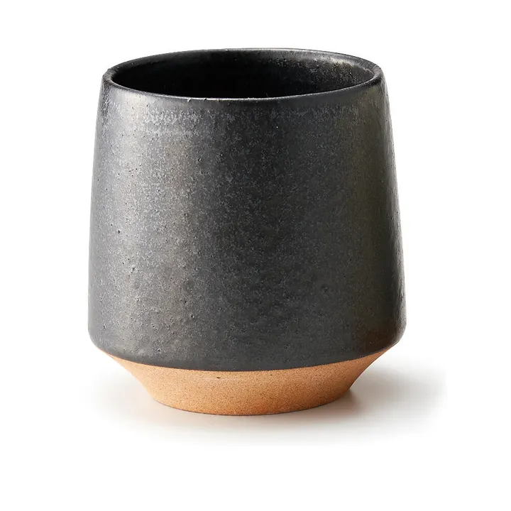 温かみのある赤土に素朴な色合いの釉薬をあわせた、ぬくもり感あふれるフリーカップ。 シンプルでありながらも口がすぼまったスタイリッシュなデザインです。 コーヒーやお茶を淹れてほっこりとカフェタイムを楽しんだり、焼酎やウイスキーを入れてキリリと晩酌したり。 使い手によって表情が変わる、幅広い用途に使えるフリーカップです。 ホワイトはつるつるとした質感、ブラックはさらさらとマットな質感です。