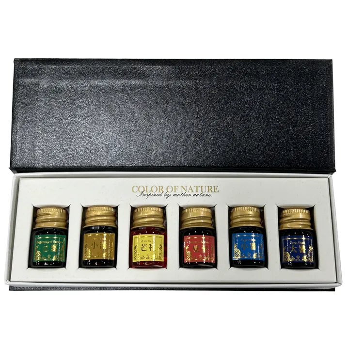 一年を細やかに区切り、自然の変化を映し出す「二十四節気」。 その豊かな情景を一滴の色に閉じ込めた、24色のインクコレクションが誕生しました。春の光を思わせる柔らかな色、夏の緑の深さを宿した色、秋風の気配を感じる穏やかな色、冬の静寂を抱く透明感――それぞれの節気が持つ“季の表情”を、繊細な色彩で表現しています。 二十四節気をモチーフにした24色のインクを春夏秋冬に分けて、6色のインクを少しづつ楽しむ事ができる様に、各色5ml瓶に集めたミニインクコレクション。専用のギフトボックスに収納されてインクのコレクションとしてもおすすめです。