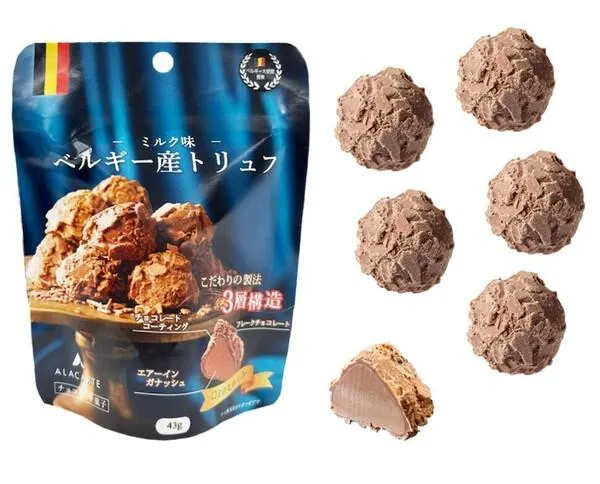 こだわりの3層構造により実現した口どけなめらかなベルギー産ミルク味トリュフ。