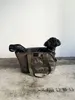 ●フラップ2重構造 本製品はフラップが2重になっています。 1枚目はポリエステル素材のフラップ。 完全に外が見えない状態になります。 2枚目はメッシュ素材のフラップ。 メッシュを閉じると飛び出す危険性は少ないので 交通機関を利用する方にもお勧めいたします。 ●フラップ収納 1枚目のフラップはくるくると巻いてポケットにそのまま入れて下さい。 2枚目のメッシュフラップはくるくると巻いて 内側から出ているテープで外側のスナップで留める事ができます。 ●フロントポケット オープンポケットなのでさっと取り出せるおやつなどを収納するのに便利です。 ●背面ポケット 上下が貫通した帯状のジッパーポケットがついています。 スーツケースの装着可能。 車に乗せる時はシートベルトで安全に固定する事もできます。 さらにジッパーポケットになっているので大事な小物や、 カワイイ瞬間を逃さないようにスマホを収納しても◎ ●サイドの空気穴 高さが低い方向(顔が向いている方向)に大きめの空気穴を付けています。 ●底板  バッグの形が曲がらず、底の形を保ちます。 底板はしっかりとした補強剤が入っており、 ペットの足腰を守りたるみの心配がなく安定感を持って使用できます。 ●底板カバー(ふわふわ素材) 板サイズよりも長めにお作りしております。 底の設置する時に長い部分をくるくるとして クッションのようにもでき、必要の無い場合は底に折り込むとフラットになります。 トートからお顔や腕を出すとリラックスする子が多いようです。 その場合にはカバーを伸ばしてご使用すると ジッパーや鞄の端が当たる事がなく快適に過ごす事ができます。 ●ハンドル(持ち手) ハンドルクッションにより肩への負担を軽減。 肩掛けができるように長めの仕様になっています。 ●内装の安全リード ペットにとってのシートベルトです。 安全リードを首輪やハーネスにつなげてご利用ください。 ●ハンドルのナスカン金具 お手持ちのポーチなどをひっかけるのに最適です。 こちらはナスカンになっていますので ヒキテやループなどがあるポーチなら簡単に装着する事ができます。 【PUFF 販売価格について】 弊社設定上代(税込価格)での販売のご協力をお願いいたします。 また、商品に対してのクーポン等はご遠慮いただいております。 ショップ全体でのクーポン等は問題ございません。 ご理解・ご了承のほどお願い致します。