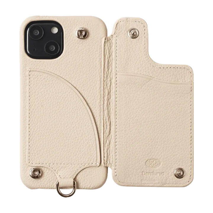2023年9月より弊ブランドはDemiurvo(デミウルーボ)改めDEMIU(デミュウ)に改名いたします。 それに伴い、DEMIUの名を配したブランドネーム・ロゴが採用されます。 一部商品に関しては、Demiurvoとして引き続き販売いたしますが順次モデルチェンジ予定です。 何卒、ご理解のほど宜しくお願い致します。 カラー豊富なお財布機能つきiPhoneケースPOCHE(ポシェ)。 選び抜かれた上質なフランス産牛革を使用したiPhoneケース。 本革を使用しているため、ひとつひとつとして同じ革がないところも魅力。 思わず目を惹かれるカラーと質感で存在感抜群のアイテムです。 右扉の内側に2段のカードスリットと隠しポケット、左側に収納ポケット、 外側に小銭入れを施しお財布としての機能を備えた便利なアイテム。 蓋をささえにして横置きできるのでYouTubeやテレビ会議にも便利。 ショルダーなどを付けられるリングが付いているので、別売りのショルダーストラップとのセットや色違いのストラップでコーディネイトするのもおすすめです。※iPhone12 miniおよび13miniの背面のカード入れに関してですが左側(ケース装着側)の仕切り部分と、右側の裏ポケットにはカードはお入れいただけません。右側のカード入れにはカード段が1つの仕様となります。ご注意ください。 ※ストラップは別売りです。 ー仕様ー・素材本体:牛革ケース部分:ポリカーボネート金具:ニッケル・重量約70g