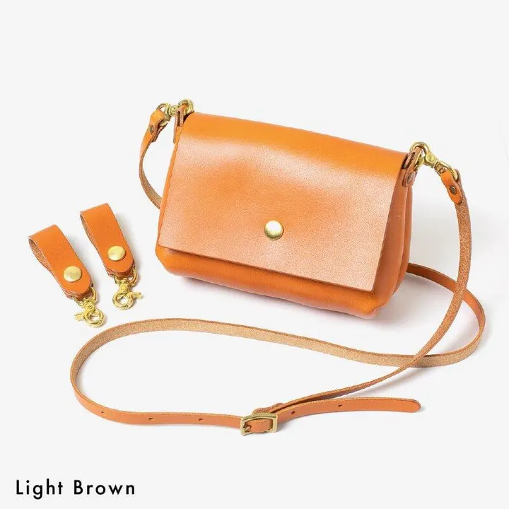 ◉身軽なお出かけにちょうど良い。小さなポーチ◉ - 革の質感を生かした丸っとした形が特徴的な小さなポーチ。携帯や小さめの財布などの持ち歩きにちょうど良いサイズ感です。男女問わず誰にでもお使いいただけるようにシンプルにデザインしました。ストラップの付け替えができるので、その時の服装に応じて持ち方を変えることができます。 スマホとマネークリップと小銭入れを入れてみました。長さが150mmまでのスマホでしたら収納できます。iPhone SE 第二世代のケースなし(長さ138.4mm)では、余裕をもって収納できました。 - ■サイズ: ---本体:幅16.0×高さ10.5 × 奥行き5.5cm ---ベルトストラップ:長さ9.5 × 幅2.0cm ---ショルダーストラップ:長さ約105〜123cm、ベルト幅1.0cm ■素材:牛革(スムース)・真鍮・鉄 ■原産国:日本 - ご注意 ※植物性タンニン鞣しの革を使用しているため、色むら、シワ等がある場合がございます。