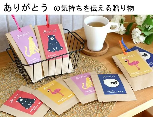 からだの事を考えて厳選した素材をブレンド美味しい健康茶が出来ました。 日頃の感謝を込めて大切な方へ「ありがとう」 朝の目覚めに、おやすみ時に、毎日のリラックスタイムに4種類のブレンドティーの味と香りをお楽しみください。 ●温活茶(ノンカフェイン)冷えが気になる方に 後味がすっきりした味わい。 ●腸活茶(ノンカフェイン)お通じが気になる方に 食物繊維たっぷりで香ばしい味わい。 ●眠活茶(ノンカフェイン)穏やかな眠りのために 軽い飲み口ながらコクがある味わい。 ●美活茶(ノンカフェイン)キレイのために 酸味のあるスッキリとした味わい。 内容量 1包入り:2g 5包入り:10g(2g×5包) 規格 ■原材料:●温活茶:黒豆茶(国産)、金時生姜、よもぎ茶、紫蘇茶、イチョウ茶 ●腸活茶:キャンドルブッシュ(インド)、エビスグサ、コーン茶、どくだみ茶、ごぼう茶 ●眠活茶:ルイボスティー(南アフリカ共和国)、ラフマ、オレンジピール、レモンバーム、クワンソウ、ハニーブッシュ ●美活茶:ルイボスティー(南アフリカ共和国)、ハニーブッシュ、オレンジピール、ローズヒップティー、ハイビスカスティー ■保存方法:直射日光の当たる所、高温多湿の所での保存は避けてください。 ■パッケージ:個包装 ■商品札:無し