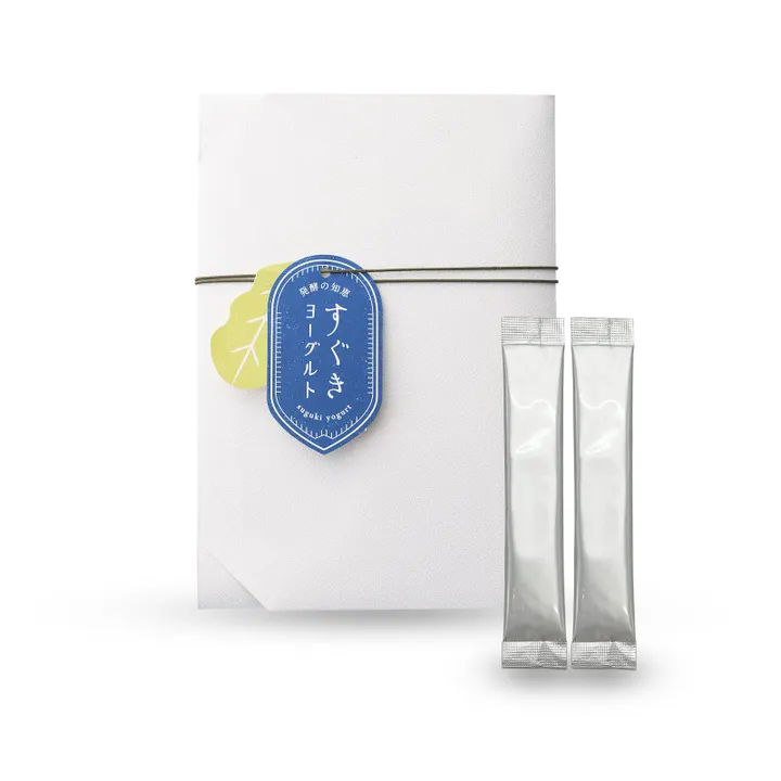 ★お試しサンプル:1番人気の商品です★ 京都のすぐき漬けから生まれた「植物由来の豆乳ヨーグルト種菌」2包入り。 【商品の特徴】 お好きな無調整豆乳に混ぜて常温に置いておくだけで、美味しい豆乳ヨーグルトが完成します! ※発酵に要する時間は24時間~72時間で、季節・天候・室温などにより変動します。 【お取扱い例】 ◇販売店様(オーガニック・自然派食品店様など):店頭販売として。 ◇料理教室様:レシピ素材、生徒様へのご紹介として。 ◇オーガニックレストラン・カフェ様:食事メニューの素材、店頭販売として。 ◇旅館・宿泊施設様:食事メニューの素材、お土産コーナーの物販として。 ◇エステサロン様:ファスティングの回復食のご紹介として。 など、様々な業界様からご好評いただいております。 【すぐきヨーグルトとは】 《累計3万包突破!》 2022年夏に販売開始後「癖のない豆乳ヨーグルトが作れる」と口コミで広がり累計3万包突破! 数々の雑誌でも話題の豆乳専用のヨーグルト種菌です。 《まろやかな味わい》 出来上がった豆乳ヨーグルトは大豆本来の甘みが引き立ち、酸味が少なくまろやかな味わいです。 そのまま食べるのはもちろん、シロップやお醤油をかけても美味しくお召し上がり頂けます。 《植え継ぎ可能》 3回まで植え継ぎが可能なので1包から作れる豆乳ヨーグルトは2.7ℓ以上。 ヨーグルトメーカーなどの電力も必要ないため、お財布や環境にも優しいエシカル&サステナブルな商品です。 《安心の100%発酵保証》 万が一うまく発酵しなかった場合は、商品付属の作り方パンフレットに記載されている専用フォームからお申し込み頂くと、追加で1包を無料でお届けしております。 ご購入されたお客様へのアフターフォローもお任せください。(対象条件あり) 【原材料名】 米粉(国内製造)、もち米粉、乳酸菌(デキストリン、SUGUKI乳酸菌SOY-1) ■こんな方におすすすめ 《健康や美容を気遣う全ての方へ》 ヴィーガンや乳アレルギーの方はもちろん、腸活、美容、フィットネス、ダイエットなど、健康に関心のある様々なお客様からご愛顧頂いております。 ■販売実績 《企業様での実績》 自然食品専門店やペット用品店、美容サロン、フィットネスでの店頭販売や、自然派レストランやホテルのお料理などでご使用頂いた実績があります。 2023年12月には「発酵の知恵 すぐきヨーグルト」が、日本在住の外国人が選ぶ「おもてなしセレクション2023」を受賞し、都内のご試食専門店にて、海外のお客様へ向けての販売もおこないました。 -------- ■すぐき乳酸菌シリーズにかけた想い "日本古来の文化や暮らしの知恵を、現代の日本人に届けたい" 古くから日本人の健康を支えてきた発酵食文化。 その原点ともいえるのが、野菜を乳酸発酵させてつくるお漬物です。 そしてお漬物に棲む乳酸菌こそが、現代の日本人が健やかに過ごすためのカギなのではないかと、私たちは考えました。 -------- "日本人のカラダには、ニッポンの乳酸菌が合う" すぐき乳酸菌シリーズに使用されている「SUGUKI乳酸菌SOY-1®」は、京都の三大漬物と言われる名産「すぐき漬け」から採取された植物性乳酸菌です。 約400年前、京都最古の神社として名高い上賀茂神社にて「すぐき菜」の栽培が始まり、江戸時代には「すぐき漬け」として、その技術は現代に至るまで脈々と受け継がれてきました。 すぐき漬けの乳酸菌は強い塩分に漬け込まれ、栄養の少ない環境下でも力強く生き抜いてきたため、動物性乳酸菌と比べて胃酸に強く、腸までしっかり届く特徴があります。 それゆえ「SUGUKI乳酸菌SOY-1®」は、現代の日本人のカラダにも馴染み深く、毎日の健康を優しくサポートしてくれるのです。 -------- ”子どもから大人、そして愛するペットまで、家族みんなの健康を支えたい” 例えば、ほとんどの豆乳ヨーグルトには、チーズや乳製品などから採れた動物性乳酸菌が使用されています。 しかし原材料を見ても、乳酸菌が動物性なのか、国産かどうかさえ分かりません。 そこで私たちは、「余計なものは一切入れない」商品づくりにこだわり、完全国産・100%植物性の乳酸菌を開発することにしました。 すぐき乳酸菌シリーズのひとつである「発酵の知恵 すぐきヨーグルト」は、乳酸菌の粒子がとても細かく、なんらかの粉末に付着させる必要がありましたが、国産原料にこだわる中で試行錯誤を繰り返し、発酵の邪魔をしない「米粉」を使用することで製品化に成功しました。 このように開発された私たちの商品は、たくさんの人を元気に、笑顔にしてくれると信じています。