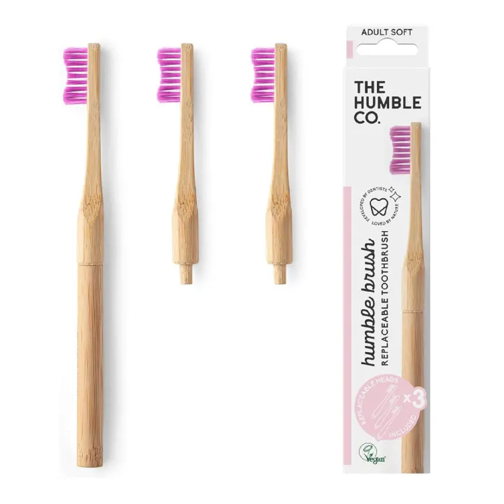 歯科医の指導・監督のもと製造された、スウェーデン生まれの歯ブラシのヘッドが交換できるタイプ。持ち手部分には竹材が使用されているので、燃やしても有害となる毒素が放出されることもありません。ブラシ部分は、植物由来原料を使用したバイオベースナイロンでできており、一般的な歯ブラシと同様の使い心地です。エンピツを持つように軽く持ち、やさしく歯をブラッシングしてください。