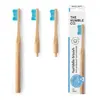歯科医の指導・監督のもと製造された、スウェーデン生まれの歯ブラシのヘッドが交換できるタイプ。持ち手部分には竹材が使用されているので、燃やしても有害となる毒素が放出されることもありません。ブラシ部分は、植物由来原料を使用したバイオベースナイロンでできており、一般的な歯ブラシと同様の使い心地です。エンピツを持つように軽く持ち、やさしく歯をブラッシングしてください。