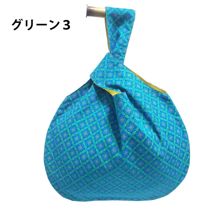「しじみバッグ」は、その名の通りモノを入れた状態が貝の“しじみ”に似ていることから名付けられました。 左右の持ち手の長さが異なっているのが特徴で、長い持ち手を短い持ち手に通すと、口が閉まりコロンと丸い「しじみ」の形になります。 チラッと見える内側のイエローがキュート!リバーシブルなので、イエローを表面にして使うことも出来ます。 使わない時はコンパクトになるので、エコバッグとしても活躍。旅先ではサブバッグとして、近所でランチの時はスマホとお財布を入れてお出かけ。お着物や浴衣にもぴったり合いますよ。 左右、表裏で異なる布を用いたコンビバッグもございます。商品画像の番号をご確認の上、ご注文ください。 南アフリカから取寄せたシュウェシュウェ(南アフリカ伝統布)を、日本でしじみバッグに仕立てています。 【シュウェシュウェ】 カンガやパーニュといったアフリカ布は鮮やかな大柄が特徴ですが、シュウェシュウェは幾何学模様がベースのため、大き目の模様であっても、どこか和に通じる雰囲気があり、場所を選ばずにお使いいただけます。 弊社では南アフリカで作られたシュウェシュウェ製品の輸入と、シュウェシュウェを南アフリカから輸入し、その特徴を生かした製品の開発を行っております。