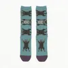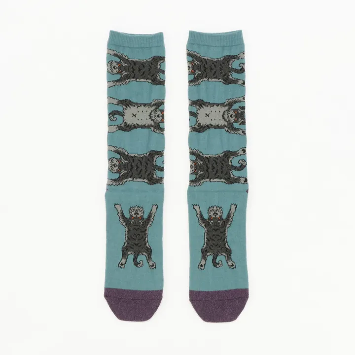 コーヒーショップで出会った、愛しい犬たち。 大阪のコーヒーショップ「EK COFFEE」。そこに集う犬たちの愛らしい表情からインスピレーションを得て生まれた、特別な一足です。 日々コーヒーショップに訪れる飼い主さんと犬たちとの温かな時間。そんな日常の一コマを切り取り、靴下に落とし込みました。 モデルは、12歳のミニチュアシュナウザー「コロナ」君。食いしん坊でおとなしく、人の顔を見つめるのが好きな、愛らしい性格の持ち主です。干し芋が大好物。 そんなコロナ君の表情を、鮮やかなグリーンとブルーで表現。足元から元気をもらえる、ポップなデザインです。