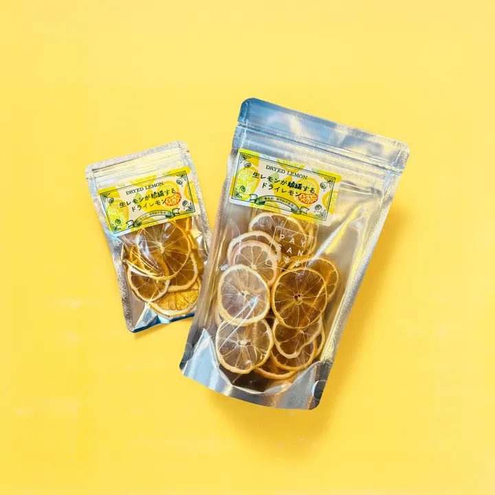 ドリンクやフードに入れるだけの、手軽なドライレモン。 ●使い方 水に入れてレモンウォーターに。 紅茶やハーブティーに入れて。 お好みのお酒に入れて。(日本酒、焼酎、カクテルetc...) はちみつに一晩入れてはちみつレモンに。 さらにヨーグルトに入れてレモンヨーグルトに。 その他サラダなどのお料理にも。