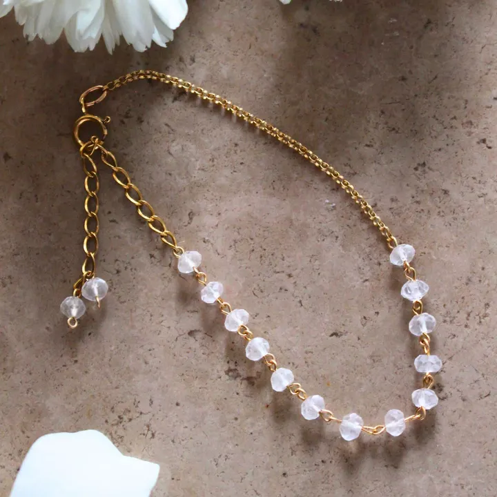 ローズクォーツは古来より、 女性的な魅力を引き出す石として知られています。 ごくごくほんのりと色づいたレベルのピンク色なので 装いを選ばず身につけることができます。 アジャスター先端のペアの天然石が 動きに合わせて揺れる様もかわいらしく、 お守りのように身につけたい美しいブレスレットです。 ローズクォーツ KEYWORDs: 愛/美/癒し/女性性/魅力/気品 ◆次回の入荷は未定です。現在のところ在庫限りの商品となります。 ~天然石のブレスレット~ 自然が長い年月を経て創り出した美しい天然石の魅力を、 最大限に感じられるようなブレスレット。 ご自分がピンとくるお気に入りの天然石が、 まるでお守りのようにも感じられるかもしれません。 日々の中で、身につけるたびに小さな幸せを感じられる。 そんなアイテムを揃えています。 ~素材へのこだわり~ RIVA GOSSIで扱っているアクセサリーの中で 基本的に、直接肌に触れるパーツ金属部分は ゴールド色は、14KGF(14Kゴールドフィルド) シルバー色は、SV925(銀92.5%/スターリングシルバー) これらの素材で制作しています。 直接肌に触れない部分に関してはメッキ素材を使用することもあります。 ページ内の原材料表示部分をご確認ください。 14KGF(14Kゴールドフィルド)とは、 かなり厚い層で14Kコーティングした素材で、 金属アレルギーを起こしにくいといわれています。 ※全ての方にアレルギーが起こらないわけではありません。 ほとんどはがれることはなく、 欧米などではポピュラーな素材です。 金メッキ素材よりも値がはりますが、 14K-18Kなどよりお求めやすく、 天然石のアクセサリーを、 より身近に楽しむことができます。 お客様に安心してアクセサリーを選んでいただけるように 素材にもこだわっています。 ◇天然石は自然が作り出したその特性上、個体差のあるものです。 可能な限り同様のイメージを保つよう選別しておりますが、 量産品ではないため、何卒ご理解くださいませ。