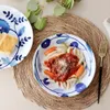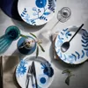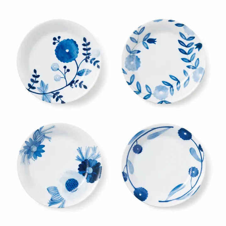 どこか懐かしさを感じさせるレトロな花柄が施されたプレートセットです。白地に藍色で描かれた模様が料理を引きたててくれます。 和食、洋食、中華やアジアン料理、エスニック料理など幅広く活躍します。