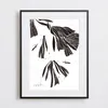 【現代アートポスター】植物 葉っぱ モノトーン 白黒 おしゃれイラスト A4(S) フレームセット:黒 29.4×38.4cm