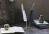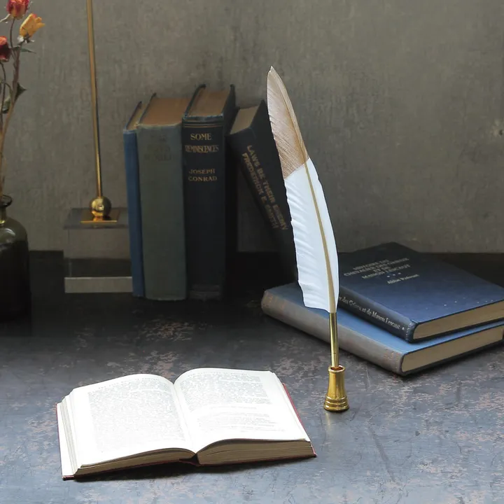 クラシカルな羽根のボールペン シルバー/ゴールドが塗装されたクラシカルな鳥の羽根のボールペン。それぞれの塗装に合わせたペンスタンドが付属。 このボールペンは、軸を回すことでペン先が繰り出される『回転式』を採用しています。