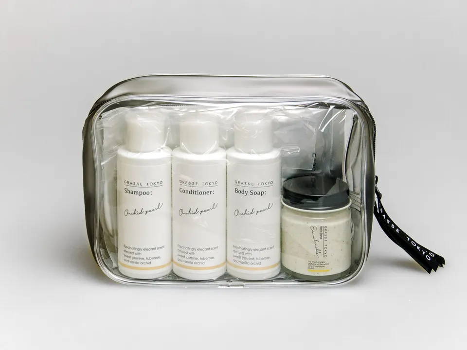 【トラベルポーチセット 1セット=3個 全3種】 ------------------------------------ シャンプー/コンディショナー/ボディソープ ★スクラブ35g ★エプソムソルト(バスソルト) 1回分 ハンド&ボディクリーム お試しサイズ・2種類 ------------------------------------ 旅に連れて行きたくなる丁度良いサイズのトラベルポーチセットです。 使い終わった後はそれぞれの商品を新しく差し替えてご使用いただけます。 ★=香りが選べます。スクラブとエプソムソルトは共通の香りです。   アイテムごとに違う香りは選べません。 【セット内容】 ・シャンプー・コンディショナー・ボディソープ 香り オーキッドパール 特長 アルガンオイル・マカダミアナッツオイル配合 容量 各50ml ・ハンド&ボディクリーム 香り ブラックカラント,ウォーターリリー 特長 オーガニック認証シアバター配合 容量 3g×2包 ・エプソムソルト 香り (ブラックカラント・ウォーターリリー・オーアドミラブル)の中から、注文時にご選択ください 特長 高純度硫酸マグネシウム使用 容量 150g(1回分) ・ボディスクラブ 香り (ブラックカラント・ウォーターリリー・オーアドミラブル)の中から、注文時にご選択ください 特長 植物性スクラブ&アルガンオイル配合 容量 35g 【香り】 ・オーキッドパール:甘美なバニラオーキッド、 チュベローズ、ジャスミンが奏でる 艶やかでドレッシーな香り ・ウォーターリリー: レモンの清涼感から スイレンの瑞々しさへ移り行く香り ・ブラックカラント: スミレ、ローズの華やかさに包まれた 酸味のあるブラックカラントの香り ・オーアドミラブル: オレンジの花、ベルガモットを 基調とした清々しいシトラスの香り ※POPあり ※ロット単位のご注文で店頭用テスター1点をお付けします。  ご希望の際はメッセージでお知らせください。 ------------------------------------ ■ポイント ・そのまま持ち運べるポーチ入り ・旅行、出張、ジム、サウナなどのお供に ・トラベルセットには珍しいスクラブ付き ・気になる商品のお試し用としても