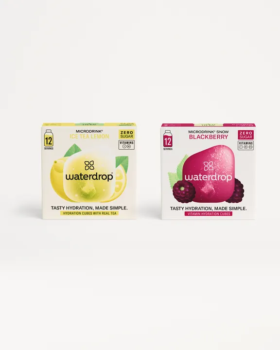 【商品説明】 人気フレーバー2種がセットになった、お得なお試しセット。爽やかな「Ice Tea レモン」と、芳醇な「ブラックベリー」を気軽に楽しめます。水に溶かすだけで、どこでも手軽に美味しいドリンクを。 最高品質の果実エキスとビタミン waterdrop®マイクロドリンク ハイドレーションキューブ ・天然の果実と植物エキスを使用 ・栄養価の高いビタミンを含有 ・ローカロリー ・砂糖不使用 ・人工保存料不使用 ・グルテンフリー ・ヴィーガン 直射日光や高温を避け、乾燥した場所で保管してください。 原材料および栄養成分情報 ICE TEA LEMON 平均栄養価 500 ml 当たり エネルギー 5.2 kcal タンパク質 0 g 総脂質 0 g 炭水化物 0.4 g 食塩相当量 0.2 g ビタミンC 18.0 mg ナイアシン 3.2 mg 原材料:緑茶エキス/pH 調整剤、香料、炭酸 Ca、甘味料(スクラロース)、ビタミンC、ナイアシン BLACKBERRY 平均栄養価 500 ml 当たり エネルギー 5.4 kcal タンパク質 0g 総脂質 0g 炭水化物 0.5 g 食塩相当量 0.2g ビタミンC 24mg ナイアシン 0g パントテン酸 0g ビタミンB1 0g ビタミンB6 0g ビタミンB12 0.6µg カフェイン 0mg 原材料:ビルベリーパウダー、ブラックベリーパウダー、シトラスファイバー、リンゴパウダー、pH調整剤、香料、甘味料(ステビア抽出物)、着色料(アントシアニン)、炭酸Ca、ビタミン C、葉酸、ビタミンB12 サステナブルな飲み物の選択 waterdrop®なら最小限のパッケージで、500mlペットボトル飲料と比べて プラスチックを最大98%削減。 1. 天然エキス. 2. 栄養価の高いビタミン. 3. 砂糖不使用. 4. ヴィーガン. Water. Drop. Enjoy! Water. Drop. Enjoy! waterdrop® マイクロドリンクは、小さなシュガーフリーのキューブ。 シンプルな3ステップで、水にフルーティーな味わいをプラスできます。 WATER 400–600ml の冷たい水 DROP キューブを完全に水に溶かす ENJOY フルーティーな飲み物を楽しむ
