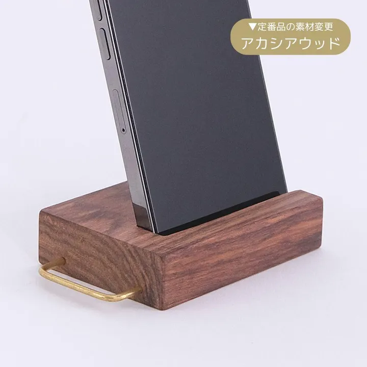 ウッド製のモバイルスタンド。 スマホと一緒に持ち出して、音楽を流したり動画を楽しむことができます。 ブラス製のフック付きなので、使わない時は掛けて収納が可能です。 キッチンに掛けておけば、レシピ動画を見る時などさっと取り出せて便利です。 BRASS(ブラス)について BRASS とは真鍮のことで、SHISEI の BRASS 製品はすべて職人によるハンドメイドで生産しています。独自の質感や深みのある光沢が上品な雰囲気を醸し出し、使うほどに増していく風合いも真鍮素材ならではの特徴です。年月の経過とともに、自分だけのエイジングを感じられる愛着のあるものへとなっていきます。 ACACIAWOOD(アカシア)について ACACIA WOODは中心部が濃い茶色で周辺部は白色と、濃淡の差がはっきりとしています。これらを木材そのものの特徴として捉え、原材料を無駄なく使い、限りある資源を大切にしたいと考えています。また、手作りのため商品のサイズや形状にも多少の誤差があります。素材そのものが持つ個体差や、大量生産にはないそれぞれの表情をお楽しみください。