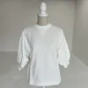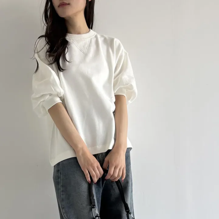 【日本製】Vガゼットバルーンスリーブ裏毛トレーナー ホワイト