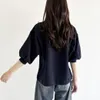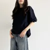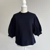 【日本製】Vガゼットバルーンスリーブ裏毛トレーナー ネイビー