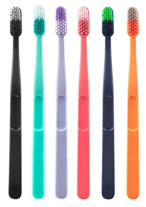柄に再生プラスチックを使用した歯ブラシ。 レッドドットデザイン賞受賞。 クリーン スマイルは、自然で無理なく持ちやすいハンドル。 自然をイメージしたアースカラーが特徴的です。 柄に再生プラスチックを使用し、歯ブラシ全体の80%が再生資源です。 【全6色展開】 アソートセットの色はランダムです。指定はできません。予めご了承ください。