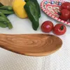 サイズ:約30cm サラダを混ぜたり取り分けるのにもどうぞ。 *オリーブの木はとても硬く傷つきにくい特徴があります。 *木目も一つとして同じものはないので、それぞれに個性があります。1本のオリーブの木から削っています。 *地中海の恵みをたっぷり浴びたオリーブの木は、ゆっくりと成長するので大きな木になるには何百年とかかります。その為、木の密度は高くなり、硬く傷つきにくくなります。 色が変わってきたらオリーブオイルを塗ってください。長く使っていただける一品です。 *オリーブの木 特有の滑らかな形、木目の表情は大自然の恵みの力をそのまま残した生命力溢れる絶品です。これぞ北アフリカの大自然アート、長い年月の間、厳しい自然の中を何百年も生き抜き育った結果が表れています。 この作品には圧倒的な「見ごたえ」があります。目にするたびに喜びと元気が湧き出ることでしょう!!北アフリカではオリーブの木は1000年近くも生きる不死身「聖なる木」とされます。 *長い年月の間に厳しい自然と共に育った複雑な木目が特徴です。とても硬質な木質で、傷つきにくく表面は滑らかで手に吸い付くような素晴らしい感触です。 *天然木のためサイズ、木目や節、色合いなどが一点一点異なります。※天然素材のため、木目は画像のものとは異なります。ご了承くださいませ。 *ギフト、お祝い、引き出物などにも人気があります。 *所有するだけで、天然木材の持つ風合いと手触り、一つとして同じ木目や色が存在しない、世界で唯一無二な存在感を満喫して頂けます。