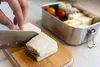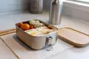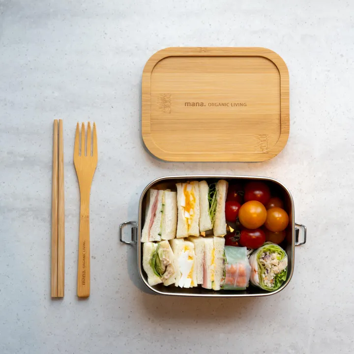 1. 衛生的で環境にもやさしいランチボックス プラスチック容器に比べて、ステンレスは食べ物の汚れやニオイが染みこみにくい素材です。そのため、少量の洗剤でさっと洗い流すだけできれいになるので、手間がかかりません!本体は食洗機もOKです(※蓋以外)。 2. 蓋はカッティングボードになり一石二鳥 丈夫な竹蓋はサンドイッチやフルーツをカットするカッティングボードとしての使用もおすすめ。キャンプやピクニックでの活躍間違いなし。 3. 保温+パッキン付きで持ち運びも安心 保温性があるので、夏場のお弁当を痛ませず、いつでもあたたかいお弁当が食べられます。両サイドの留め金とシリコンパッキン付きなので、汁物が多いおかずの漏れを防ぎ、持ち運びするときも安心! 4. 機能性・耐久性が抜群! ステンレスはとにかく軽くて丈夫!サビにくく、欠けたり割れたりする心配がないので、長期間使い続けられます。菌の繁殖が気になる夏場には、そのまま冷凍庫に入れることも可能です。