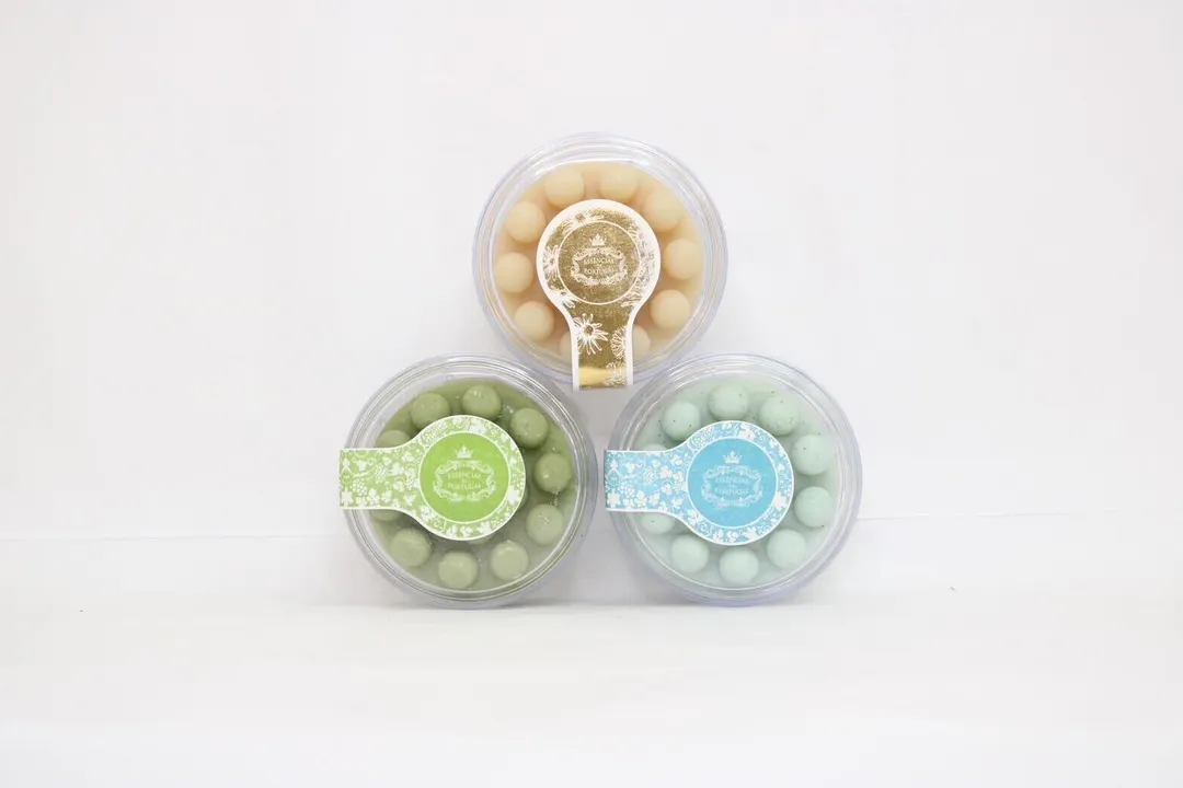 成分:パーム脂肪酸Na,パーム核脂肪酸Na,水,香料,グリセリン,ブドウ種子油,ブドウ種子,塩化Na,オリーブ果実油,酸化チタン,BHT,EDTA-4Na,エチドロン酸4Na,リモネン,オイゲノール,黄4,青1,酸化鉄、*天然成分を使用
