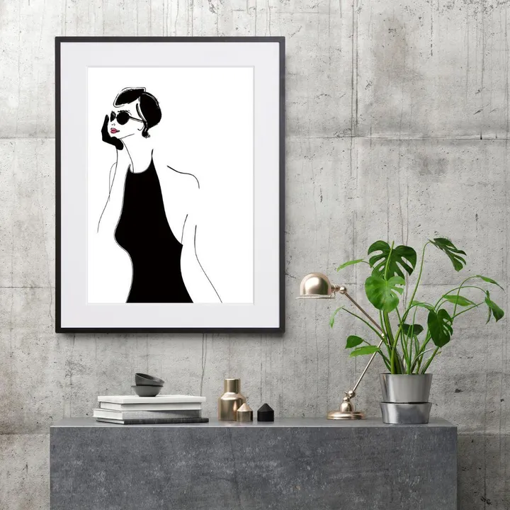 【現代アートポスター】サングラス モノトーン 都会的な女性 おしゃれイラスト A2(L) フレームセット:黒 55.1×73.3cm