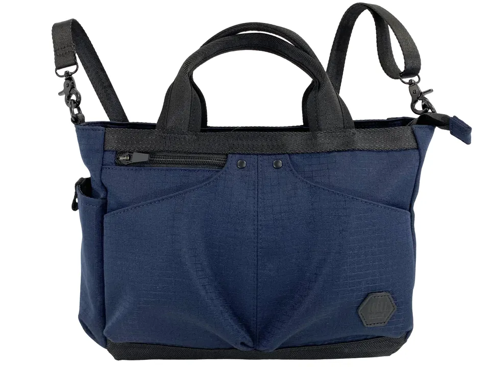 本体生地は同一色の糸で織ることによってナチュラルな表面質感に加え、ツイルを格子状に織り込んだ特殊なハイブリッド素材を採用。 着脱可能なショルダーベルトが付いた2WAYのミニトートバッグ。 外部にフリーポケット3か所とファスナーポケット2か所、内部にフリーポケット5か所とボトルホルダーが装着され、小物の収納に便利です。
