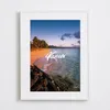 【現代アートポスター】ハワイ 風景景色 海岸 ビーチ サンセット カリグラフィー A4(S) フレームセット:白 29.4×38.4cm