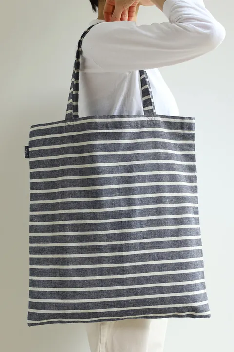 綿麻ボーダーの軽やかな生地感とA3も収まるサイズ感。 エコバッグにもサブバッグにも、マルチに使えるシンプルバッグ。