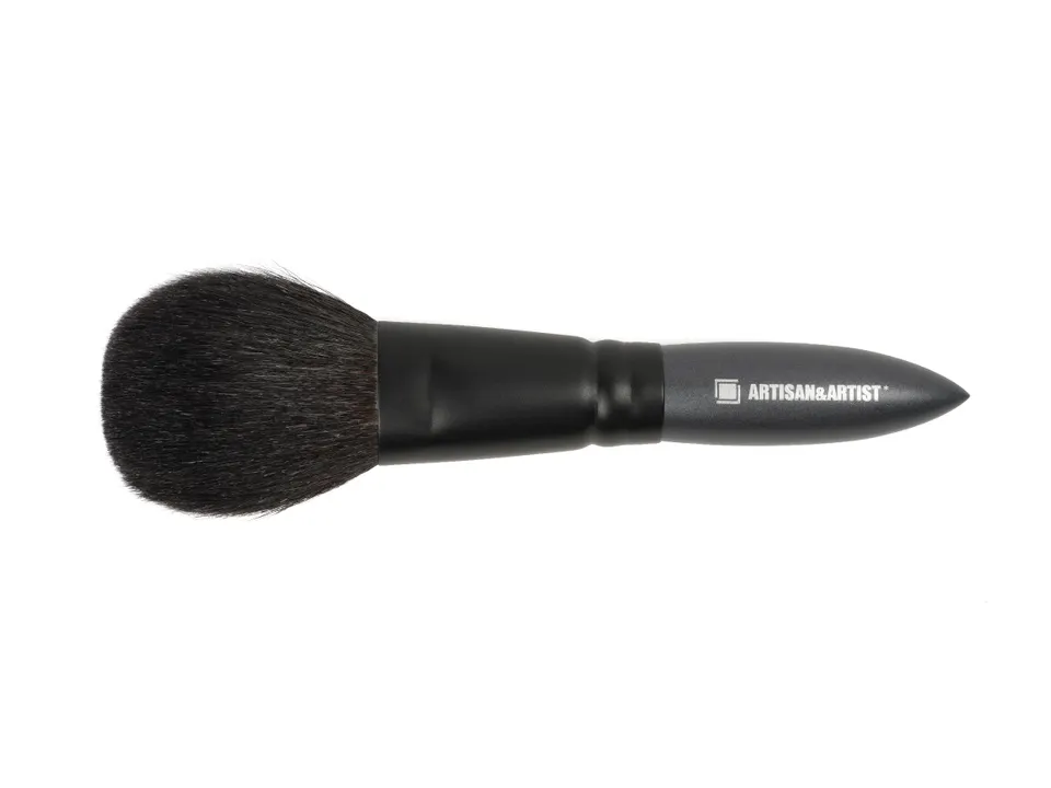 ARTISAN&ARTIST*のメイクアップブラシは、世界が認める広島 熊野で、熟練された職人の手によって1本1本丁寧に作られています。 山羊毛の中でも最高級品とされる粗光峰(そこうほう)で作られた、滑らかでコシのある化粧筆です。 パウダーブラシよりも毛丈が短く設計されており、チークの色味を強くハッキリと表現したい時にオススメのブラシです。 ブラシの角度を変えて使うことで、シャープにも、丸くふんわりとした印象にも仕上げられます。 天然毛の特質を生かすため、毛の先端をカットせずに仕上げたブラシは、使い続けることで自身の輪郭にあった形状に変わっていくのが特長です。 オリジナルの持ち手は高い操作性とグリップ力があり、ブラシケースへの収納もスムーズ。持ち歩きしやすさも考慮した逸品です。