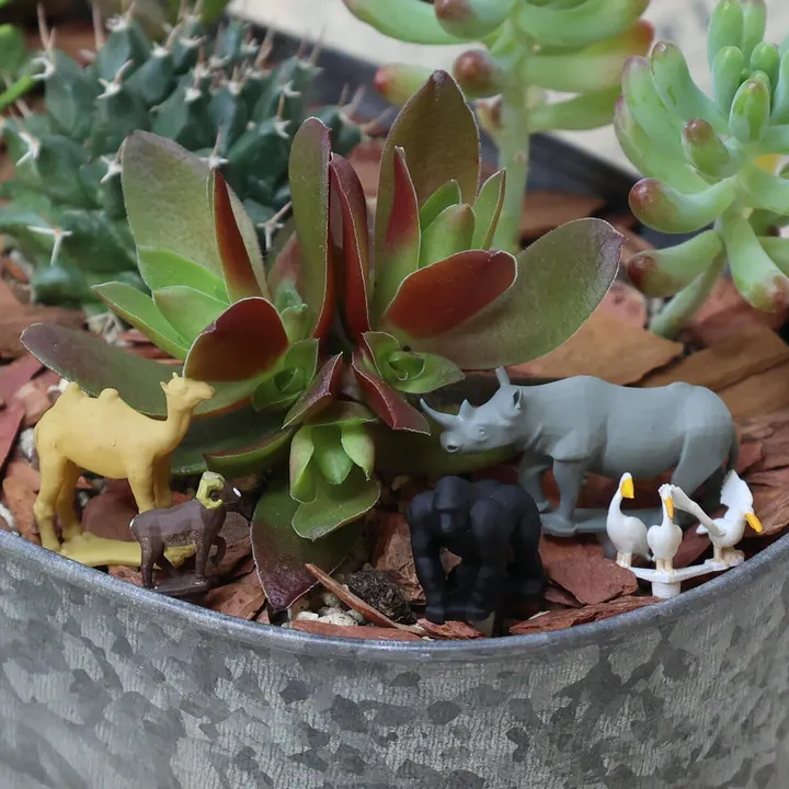 プラントフィギュア 観葉植物などに使える園芸ジオラマ作成用フィギュア(動物セット) 【GM6P】動物セット:F〈塗装済〉 サイ・ゴリラ・ラクダ・ペリカン・ビックホーン・ステージピン1本付
