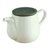 艶やかな磁器の本体と、マットな質感フタを組み合わせたポット。 和を前面に押し出したタイプが多い中、カフェにありそうな個性的なルックスです。 フタはつや消しフラットな形状で、まるでビスケットを思わせるデザインです。 空気穴は表面ではなくサイドに開いています。そのため少しフタが浮いているように見えます。 目の細かい茶こし付きで使い勝手が抜群です。 お色はオリーブとマロンの2色のご用意がございます。 シリーズには別売で手にフィットする2色の小ぶりなカップがございます。 お好みの組み合わせで多様にお使いくださいませ。 こちらは岐阜県美濃瑞浪の窯元で一つ一つ丁寧に作られています。