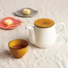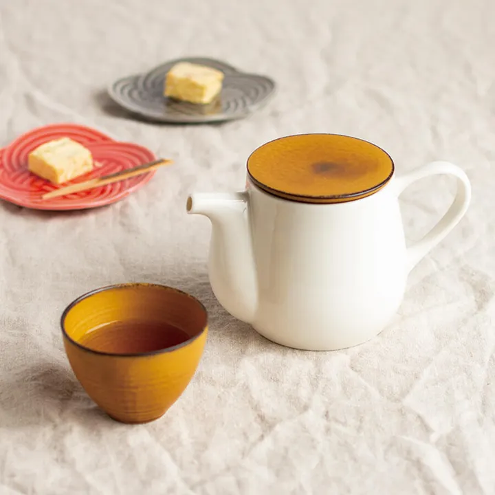艶やかな磁器の本体と、マットな質感フタを組み合わせたポット。 和を前面に押し出したタイプが多い中、カフェにありそうな個性的なルックスです。 フタはつや消しフラットな形状で、まるでビスケットを思わせるデザインです。 空気穴は表面ではなくサイドに開いています。そのため少しフタが浮いているように見えます。 目の細かい茶こし付きで使い勝手が抜群です。 お色はオリーブとマロンの2色のご用意がございます。 シリーズには別売で手にフィットする2色の小ぶりなカップがございます。 お好みの組み合わせで多様にお使いくださいませ。 こちらは岐阜県美濃瑞浪の窯元で一つ一つ丁寧に作られています。