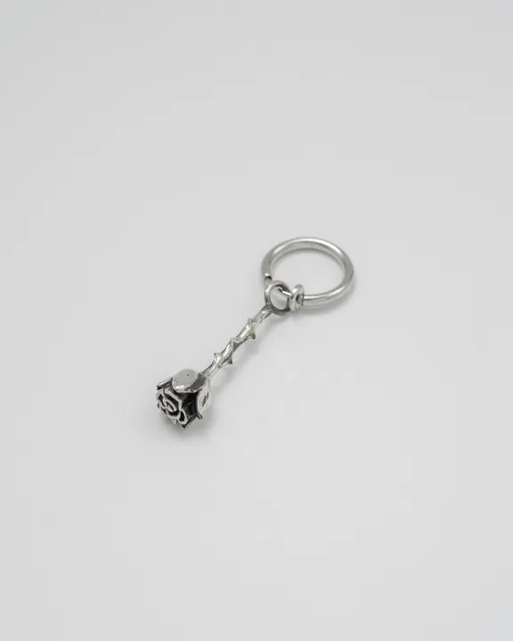 "Rose" series "Rose"シリーズの片耳用イヤリング。 細部まで繊細に作れらた薔薇チャームは、燻し加工を施し表情に深みを出しています。 揺れ動く薔薇チャームは、動きの変化で表情を楽しむことができます。 シンプルなデザインでは物足りないという方に、つけてみて欲しいアクセサリーです。 薔薇のチャームと、フープタイプのイヤリングとのセットアイテムとなり、取り外しが可能です。 ※片耳用となります