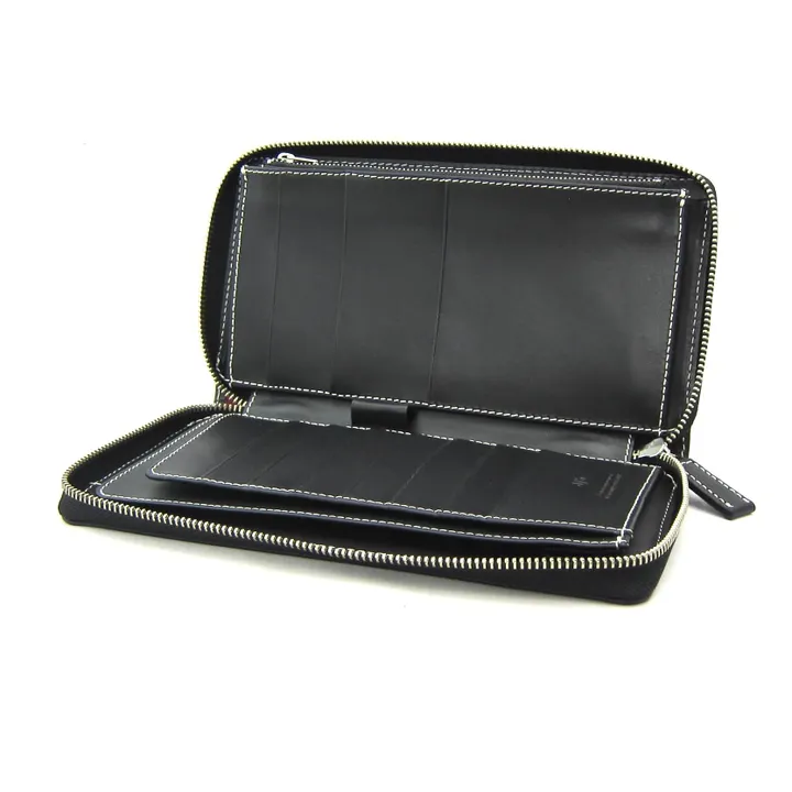 海外旅行に持って行くべき貴重品をひとつにまとめて収納したい。絶対に無くしてはいけない貴重品をひとつにまとめて保管したい。オールインワンのコンセプトを追求した、牛革製のトラベルオーガナイザーです。電波遮断シート(RFIDをブロックする素材)を中間層に入れているので、SuicaやICOCAなどの電子マネーやクレジットカードの情報を保護します。機能性、収納力、携帯性、安全性、デザイン性をしっかりと踏まえ、皆様に満足してご使用いただけますよう、期待を込めて開発しました。パスポート、航空券はもちろんですが、A4用紙を三つ折りにして収納出来るサイズなので、Eチケットや旅行工程表なども収納できます。クレジットカード、マイレージカード、免許証まで旅行に必要なカード7枚収納可能。その他、数種の紙幣やコイン、ペン、保険証書など、これひとつで旅行に必要なすべてをオールインワンに収納できるトラベラーズウォレットです。ラウンドファスナータイプなので持ちやすく、中身の落下も無くセキュリティに優れ、また背面には長さ調整できるハンドルを付けたので持ち方も色々。パスポートケースの進化系なので、スマートに海外旅行をされたい方にお勧めです。なおセカンドバッグやクラッチバッグ、大きな財布としても、また家庭内での貴重品(預金通帳、印鑑証明、ハンコ、保険証、マイナンバーカード、予備キー、診察券)をまとめて収納するケースとしてもたいへん重宝します。 素材1はイタリア・サンタクローチェ地方の有名タンナー:イルポンテ社のバケッタレザー: FIANCHI VACHETTA(スムース)を内外に使いました。 素材2はイタリア・サンタクローチェ地方の有名タンナー:アテナ社のバケッタレザー: INGRASATO(シュリンク)を内外に使いました。 どちらの革もエイジング(経年変化)を存分に楽しんでいただけます。 【NL-097】 サイズ:約 240 × 130 × 30 mm(ハンドル部分含む) 外 側:FIANCHI VACHETTA(スムース) 内 側:FIANCHI VACHETTA(スムース) 色・柄:BLACK(裏地:バーガンディ)、BROWN(裏地:オリーブ) 個 装:上下貼り箱