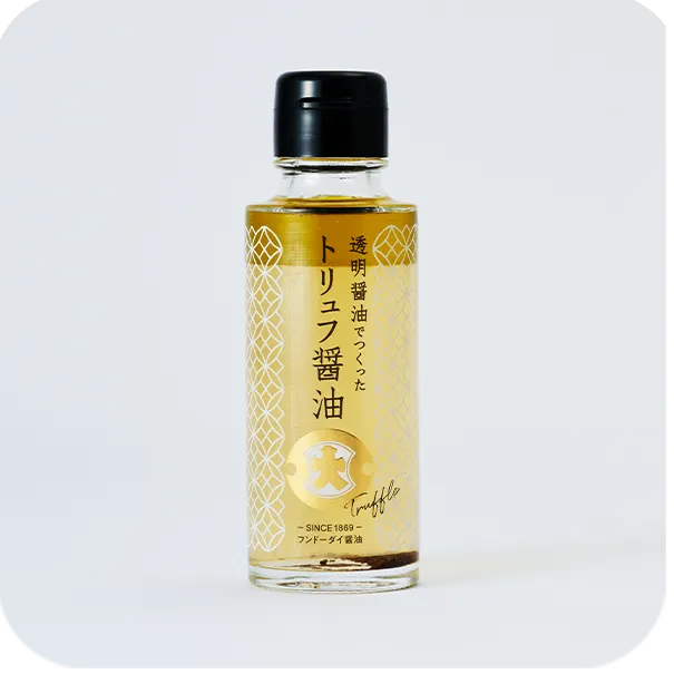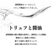 高級食材のトリュフを使用した贅沢な透明醤油! 透明醤油をベースに、香り高い白トリュフオイルと黒トリュフの粒を加えた、贅沢な香りが楽しめるお醤油です。 和のイメージの透明醤油を、ソース寄りの洋のイメージで味わうことができます。 卵かけご飯などの卵料理との相性がよく、パスタやオムレツなどにかけても楽しむことができます。 世界三大珍味のトリュフを使用した贅沢な商品です。特別な日の贈り物やお祝いの品にいかがでしょうか?