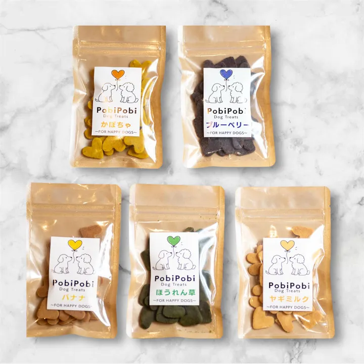 POBI POBI DOGの米粉クッキーは、犬の管理栄養士とペット食育士が共同で考案し、 家族であるワンちゃんが毎日安心して食べられよう原材料や配合設計にこだわりをもった無添加の犬用おやつです。 ⚫︎乳酸菌について 犬の腸活アドバイザーがこだわり抜いて選定した『フェカリス菌』を使用。 国内外で研究が進められ、食品分野にも利用される乳酸菌です。 1袋あたり約400億個の乳酸菌を配合。クッキー1枚あたり約13億の乳酸菌が含まれており、体内環境をサポートします。 素材そのものの風味を活かすため、各フレーバーをふんだんに使用。 保存料・着色料・香料・砂糖は一切使用していません。 ⚫︎おすすめの与え方 小型犬は割って小さめに、中型犬以上はそのままおやつとして与えていただけます。 ⚫︎こんな方におすすめ ・原材料にこだわったおやつを探している方 ・小麦不使用のおやつを選びたい方 ・毎日安心して与えられるおやつを求めている方