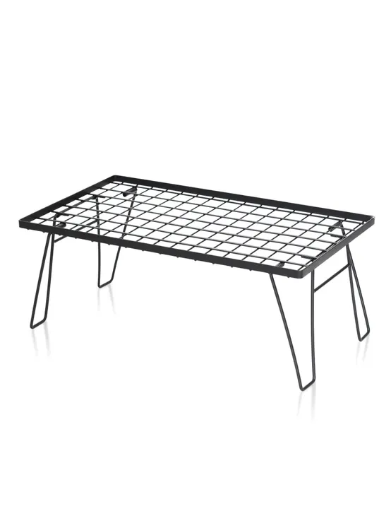 ✅使用シチュエーション:たき火、バーベキュー、ソロキャンプ、ファミリーキャンプ ✅置くもの:ミニコンロ、ダッチオーブン、ソロストーブ、ケトル、バーナー、ブッシュボックス 焚き火テーブル:熱いスキレットやケトルを 直接置くことができます。 2.1㎏と軽量なので火の近くに動かしやすくて便利です。 クーラーボックススタンド:ラックに載せることで清潔に使えます。保冷性能も最大限発揮することができます。 その他の荷物もコンパクトに収納できます。 ローテーブル:サイドテーブルとして食器やマグを置けますが、オプションの天板を追加するとオシャレなローテーブルに変身します。ソロキャンプでもファミリーキャンプでも大活躍します! 水切り台:板部分はメッシュになているので、洗った食器を置いて乾かせます。 縦積みラック:ラックを縦積みできるので、荷物をスッキリとまとめられます。 ダッチオーブン置きや五徳:※ラックが熱を持っているときは火傷対策に軍手で触るようにしてください。また、火を入れると変色する可能性があります。 汚れたもの置き:炭や巻を置くのにちょうど良いサイズです。薪ストーブの台としても使用できます。