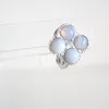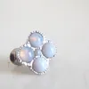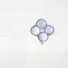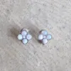 イヤリング【Vintage】ブルーレースアゲートフラワーモチーフイヤリング ブルーレースアゲートと白蝶貝 天然素材が織り成すパステルトーンの世界 淡い水色と白が層状に重なり、繊細なレースの様に見えたり 穏やかな空模様を切りとったようにも感じられるブルーレースアゲ―トと パールのような美しい艶のヴェールを纏う白蝶貝 ふたつの天然素材が織りなす柔らかな雰囲気を どこか懐かしさ漂う空想のフラワーモチーフに込めました パステルカラーの優しく清楚な色味の調和が楽しめる 可憐な表情のシリーズです ////////////////////////////// 淡いパステルカラーがロマンティックなムードをまとう ブルーレースアゲート ////////////////////////////// 淡い水色と白色が層状に重なり、 繊細なレースのように見えることからこの名がついたといわれる天然石。 透明感のあるものや模様の入っているもの、淡いやさしい色味のものなど、 一つのモチーフの中でも様々な石の表情が楽しめ見る角度によって異なる表情を見せてくれる天然石です。 石言葉は「友情」「平和」「清らかな愛情」 心を落ち着かせる効果があり、コミュニケーション能力を高めてくれる石ともいわれ、 人間関係の調和を促すパワーストーンと言われています。 ◆詳細◆ 天然石ブルーレースアゲ―トを花弁に見立てデザインした、淡いブルートーンのフラワーモチーフ。 その中心には小さな天然素材のシェル・白蝶貝を添えて、全体をパステル調の柔らかなイメージにまとめました。 ブルーレースアゲ―トは、透明感のあるものや模様の入っているもの、淡くやさしい色味のものなど その石一つひとつの表情の違いがとても魅力的。 その個性ある石を丁寧に寄せ集めることで、ベーシックなフラワーモチーフでありながらニュアンスたっぷりな美しい表情に仕上げています。 モチーフの中心ででキラリと輝くのは小さなスクエア型の白蝶貝。 白蝶貝はパールをつくるための母貝でもあり、その素材からのパールのような美しい照りや特別感のある光沢が魅力です。 2mmほどと、とても小さくさりげないサイズ感でありながら 柔らかな曲線を描くカボッションのブルーレースアゲートの中心にそっとあしらうことで、 それぞれのフォルムとカラーのコントラストが際立ち、全体を優しく引き締めるアクセントに。 モチーフのベースとなる石枠にはミル風の刻み模様を丁寧に施しているので、 ロジウムメッキによるシルバーカラーがメタリックな輝きを放ち凛とした表情を際立たせます。 ブルーレースアゲートと白蝶貝の織りなすパステルカラーは どこか懐かしくレトロなニュアンスも感じられるロマンチックな雰囲気を漂わせながら シルバーカラーとのすっきりとした辛口なカラーリングで、気負いなく取りいれていただけますよ◎ こちらはモチーフのデザインをシンプルに楽しめるイヤリング。 丸みを帯びた愛らしさのあるフォルムのフラワーモチーフでありながら、 クリーンなムードとカラーリングで凛とした端正な佇まい。 程よいサイズ感とボリュームは耳元に心地よく収まり、 装いを上品に彩りながら、お顔周りを明るく見せてくれます。 金具はクリップタイプ。 シリコンカバーも装着しやすく、快適にお使いいただけます。 商品には専用のBOXが無料で付属しますので、ギフトにも最適です◎