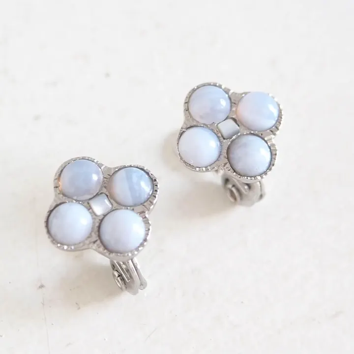 『痛くない』クリップタイプのイヤリング /ブルーレースアゲートフラワーモチーフイヤリング*ピアスタイプあり【Vintage】※BOX付き