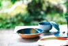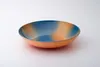 石川県加賀市の加佐の岬から見る夏の終わりの夕焼けが反射して海の色と混ざり合ったデザイン。外側は橙のグラデーション、表面は海に差し込む光の変わり塗で抗菌も施されています。食洗器や電子レンジ対応のプラスチック素材に吹付塗装で職人が一つ一つ塗り重ねた、和洋問わず丁度良い深みのある盛皿(鉢)です。