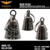 アメリカ製ガーディアンベル社製ガーディアンベルです。 MADE IN USA アメリカ製 交通安全 魔除け 御守り ガーディアンベル アメリカのライダーの間には、事故や、転倒の原因は「道路にひそむ悪魔」によるいたずらだという伝説があります。悪魔は走る者に悪戯やトラブルを運んできます。このベルは美しい音色で悪魔たちを追い払うと言われ愛されています。そんな悪魔のいたずらを防ぎ、御守りとなるのが、守護者のベルという意味を持つガーディアンベル。 日本でも鈴の音(ね)は神道では魔除けの音と言われています。ピューター製の鈴でいい音色でガーディアンベルはデザインも様々あります。 またガーディアンベルにまつわる伝説として、プレゼントとして送られたベルの効果は、自分で手に入れたものの2倍になると言われています。 それゆえに彼氏・彼女・友達・家族へのプレゼントとしての人気も非常に高まっています。 シルバーアクセサリーのようにおしゃれに装着できて素敵な音色を奏でるガーディアンベル。 バイカー以外にも自転車や旅・交通安全のお守りとしてお使いいただけます。 カバン・ランドセル・キーホルダー・ペットの首輪等に付けてお使いください!! ※タイラップ等でバイクのフレームにも簡単に取り付けできます。 アメリカンモデルだけではなく、旧車ファン、レプリカライダーまで、さらにバイクだけでなく、自転車や車にもピッタリな御守りとなっています。 アクセサリーとしても人気で、アイディア次第で車体だけでなく、キーホルダーや鞄など、どこにでも付けておしゃれに楽しめます。