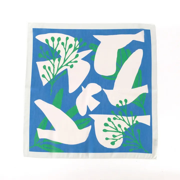 北欧の渡り鳥と植物柄のスカーフ ショートサイズ GN(グリーン)