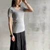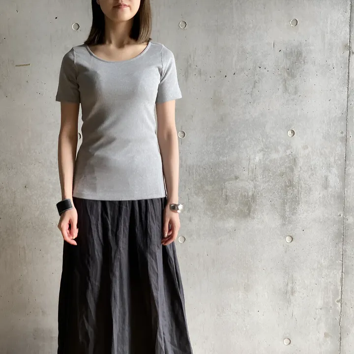 cotton 100% 厳選された良質なコットンを使用しています 生地からオリジナルで、国内工場で1日に少量しか生産することができないビンテージ編み機で編みたてた非常に柔らかく、着心地がよい生地です。 sirene mermaidのカットソーは着心地を大切にしています。洗濯表示は脇ではなくNAMEにプリントしています。 made in Japan ********************************* youtubu動画:https://youtu.be/EzygrjyyTZg instaglam動画:https://www.instagram.com/p/CwRkfwNrRA0/ ********************************* 大変伸縮性があり1-2サイズは9から11号の方でも着用可能です 初めの試着の時はピッタリとフィットする感じですが 洗っているうちに少し緩んできてはりつく感じはなくなります 脇に縫い目のないカットソーが何故いいのかというと 柔らかいおなかの横側のお肌は縫い目自体も気になりますが 洗濯表示等の織りネームがないため 心地よく着用することが出来ます 敏感肌の方にはおススメです 素材はコットン100%ですがフライス編のため同じ寸法(胸囲)でも大変収縮性があり、 ゆるやかに体にフィットし7号から11号の方の着用が可能です。 素材は厳選された良質なコットンを使用しています。 無地はボディは脇に縫い目がない丸胴<筒状に編んである>(シームレス)のため、 耐久性にも優れ、 洗濯をしても型崩れがしにくく、着心地がよいのです。 程よいフィット感でシルエットが綺麗に見えます。 バリエーションも豊富で一度購入されたお客様はその着心地のよさ、価格と品質のバランスから リピートして購入される方が多数いらっしゃいます。 大変伸縮性があり9から11号の方でも着用可能です。 初めの試着の時はピッタリとフィットする感じですが洗っているうちにはりつく感じはなくなり少し緩んできます。 おうちでのリラックスタイムに着心地抜群でソフトフィットなのでジャケットのインナーにお勧めです。 シレーヌマーメイドのコットンフライス丸胴は ?@厳選された良質なコットンを使用しています 一般的なTシャツより厚みがある30番手という太さ(重さ)の糸の中から 日本製の良質な糸を厳選しています ?Aビンテージ編み機で編んでいます 国内工場で1日に少量しか生産することができないビンテージ編み機で ゆっくりと丸く筒丈に編みたてているため糸にテンションがかからず 非常に柔らかく生地を編みたてることができます ?Bわきに縫い目がない丸胴 丸編み機で編むカットソー生地は、筒状の生地を縦にカットして一枚の 生地にしますが「丸胴」は開かず筒状のまま使うので わきに縫い目がないので着心地がいいのが特徴です SEAMLESS 定番の無地シリーズのボディは脇に縫い目がない<丸胴>(シームレス)ここが程よいフィット感でシルエットが綺麗に見えるポイントです 耐久性にも優れ、洗濯をしても型崩れしにくく着心地がよいのです。 フライスとはフライス編機で編んだリブ編みの生地 伸縮性に優れているのがフライスの最大の特徴若干厚みがあって手触りがやわらかく着心地のいいのが特徴。 フライスは、表から見た編み目と裏から見た編み目が同じでたて綿が強いのも特徴。横方向によく伸び縮みします 程よい厚みの生地なので、季節を問わずオールシーズンで着られるのも魅力のひとつ。吸湿性、綿100%は通気性に優れているオールマイティな素材です。 ROUN NECK 大きめに丸く開いたラウンドネック あきの横巾が25cmなので下着のひももでない広さです ジャケットのインナーを意識して切替ではなく裏バインダーで仕上げているのでカジュアルにならずきれいめに着用することができます HALF SLEEVES ラウンドネックとのバランスがいい細くてで短めの半袖です 肩の切替を内側に入れて腕回りが動きやすくしています 袖丈14cm