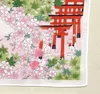 友禅刺繍 ハンカチ 「京友禅」は、江戸時代より町人文化と共に受け継がれ、近代では様々な染色技法による表現が見られ、日本における模様染めの代名詞として使われるほど、世界的にもよく知られています。 淡い色彩で柄を切り替えることで、豊かで雅な情緒を表現し、その上に写実的な紋様をあしらいました。ハンカチの右下にワンポイントの刺繍を施した、日本の美しいハンカチです。 ハンカチに使用した「綿ローン素材」は、薄手でさらっと軽やかな平織の生地。 肌触りがよく、高級感がある素材です。 伏見稲荷(ふしみいなり) 日本全国に3万社あるともいわれる「お稲荷さん」の総本宮、伏見稲荷大社。 五穀豊穣、商売繁昌、家内安全、諸願成就の神として、庶民から親しまれてきました。 稲荷山、千本鳥居の情景、神使霊狐、季節の花「桜と紅葉」を描いたハンカチです。